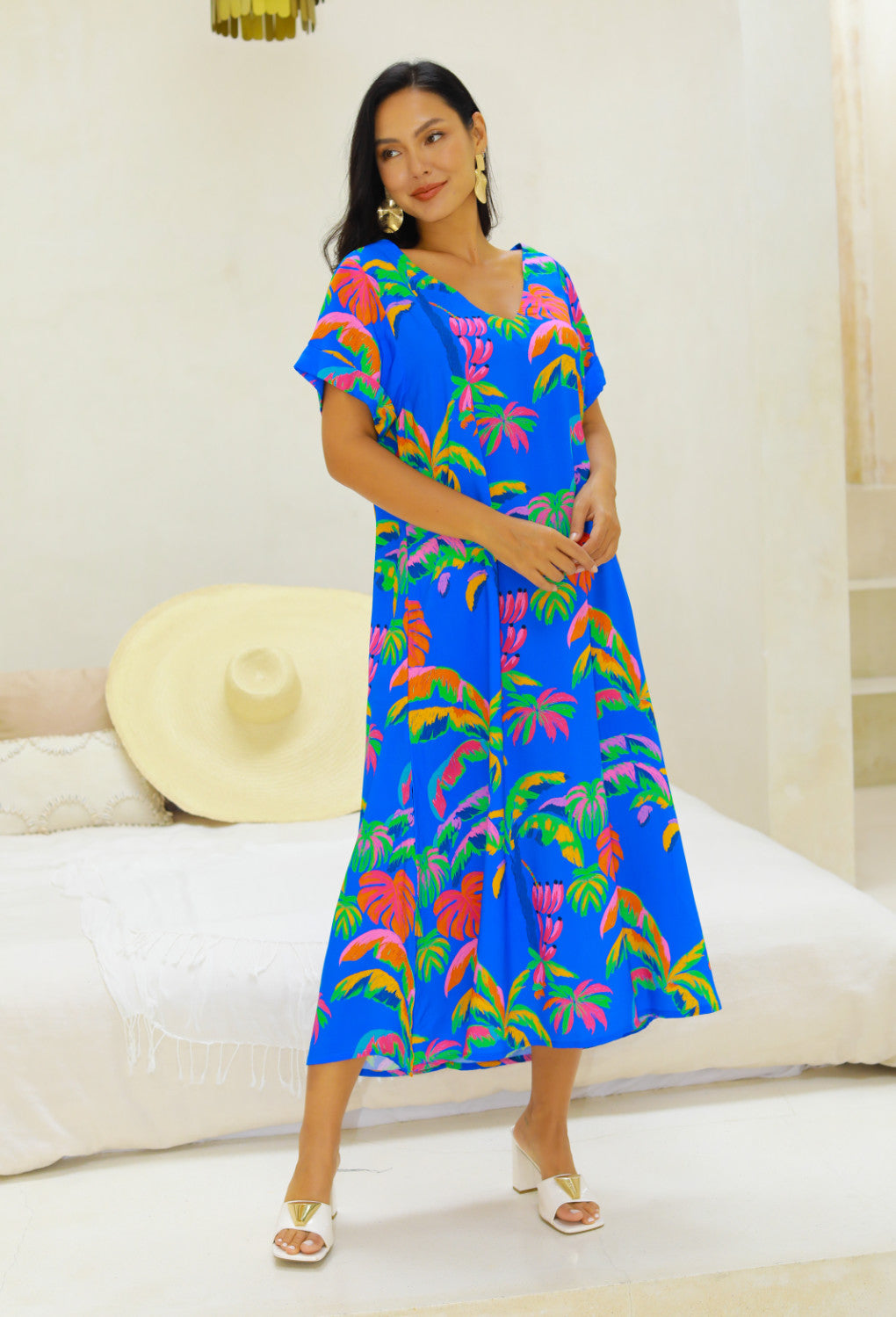 - Flattering V-neckline