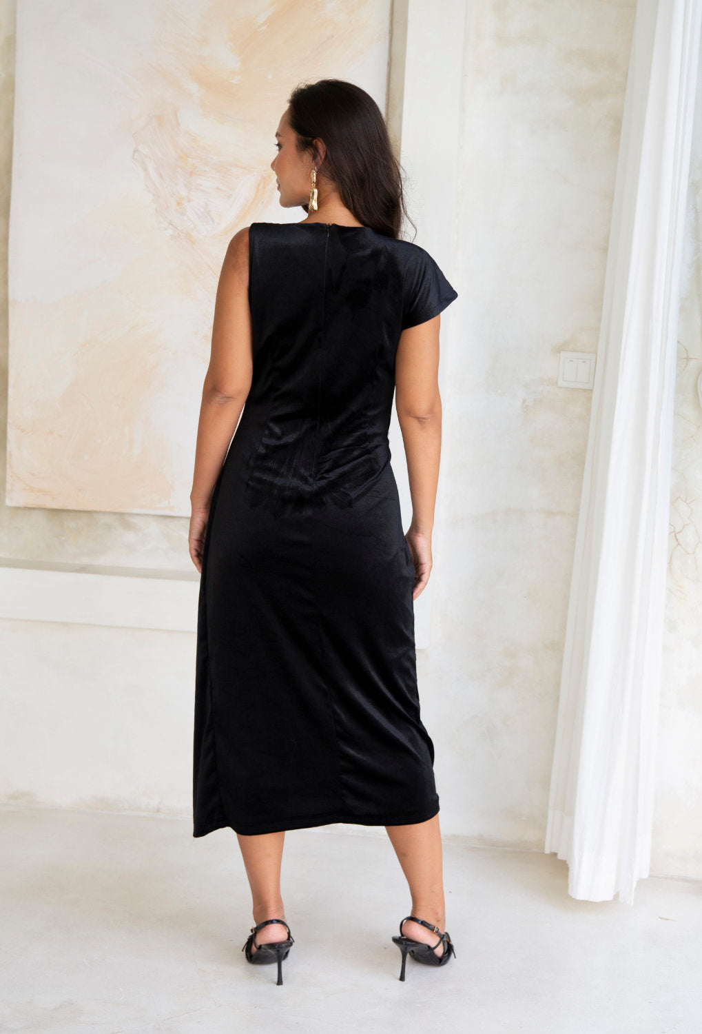 - Asymmetrical neckline With Front Rouching