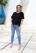 I’ve created a range of cuts to sit softly over your bust and curves, with enough room around your hips to wear loose, tuck or half-tuck.