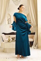 The velour side offers a rich, tactile warmth with a gentle matte finish, while the satin layer catches the light with a graceful, glossy drape.