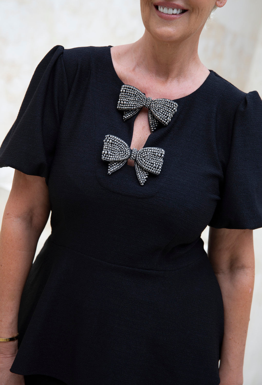 - Sophisticated Gathered Sleeve.