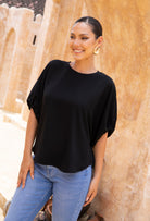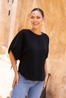 - Flattering boat neckline that sits softly across the collarbone