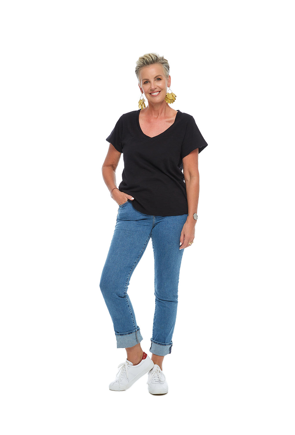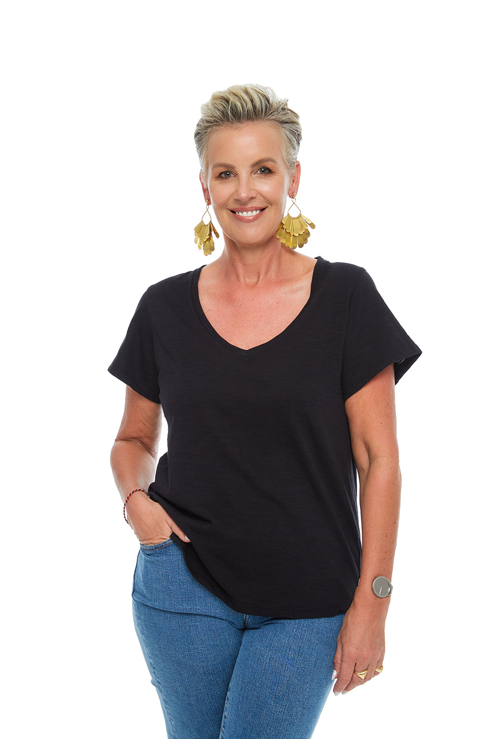 I’ve created a range of cuts to sit softly over your bust and curves, with enough room around your hips to wear loose, tuck or half-tuck.